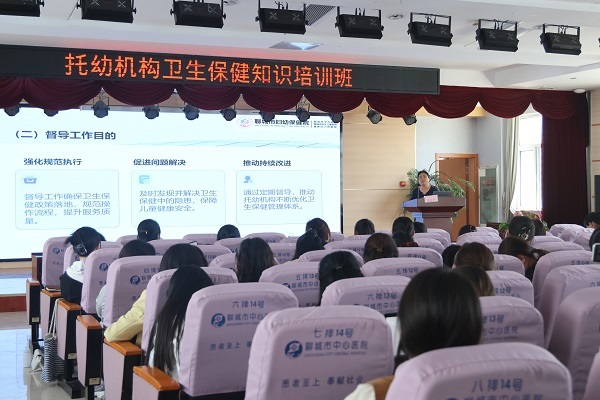 為深入貫徹落實《托兒所幼兒園衛(wèi)生保健管理辦法》,提升市屬開發(fā)區(qū)托幼機構(gòu)衛(wèi)生保健管理水平,4月29日上午,市屬開發(fā)區(qū)托幼機構(gòu)衛(wèi)生保健知識培訓(xùn)班暨托幼機構(gòu)衛(wèi)生保健管理工作會議在聊城市婦幼保健院成功舉辦。聊城市衛(wèi)健委婦幼健康科科長趙凱、度假區(qū)學(xué)前教研室主任蘆玉芬、開發(fā)區(qū)社會事務(wù)部副部長任敬、聊城市婦幼保健院副院長楊志峰出席會議。來自市屬開發(fā)區(qū)托幼機構(gòu)的負責(zé)人、保健醫(yī)等百余名從業(yè)人員參與此次會議。會議由聊城市婦幼保健院兒童保健科主任張燕主持。