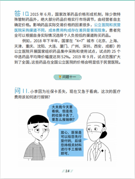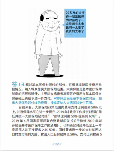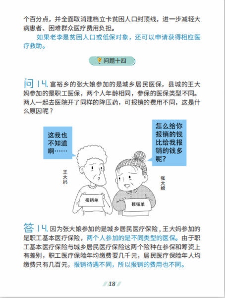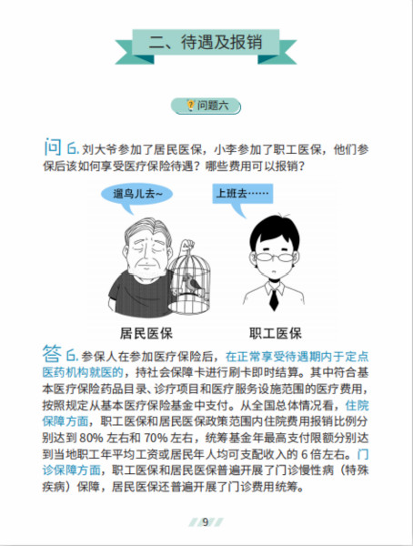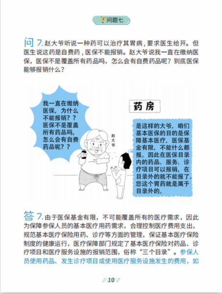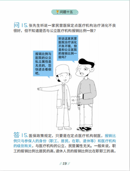 為進一步做好醫(yī)保政策宣傳工作,加深廣大群眾對醫(yī)保政策的理解,國家醫(yī)療保障局編制了《醫(yī)保政策問答手冊》,按照答疑解惑、讓群眾喜聞樂見的原則,選取了群眾最關心的典型問題 40余個,以生動、群眾化的語言進行了回答,并配以漫畫。歡迎大家結合自己的實際情況,“對號入座”解決自身在參保和享受待遇過程中遇到的難題。