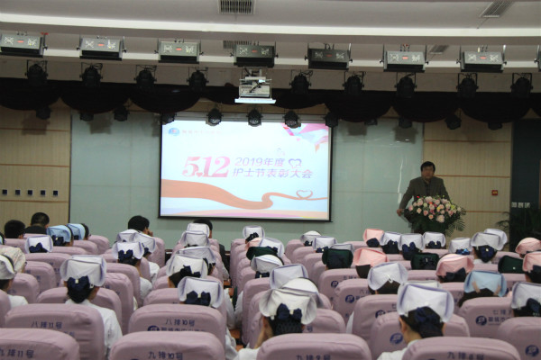 為慶祝第108個國際護士節(jié),繼承和發(fā)揚南丁格爾精神, 5月8日下午4:00,我院在六樓學術(shù)報告廳隆重召開2019年國際護士節(jié)表彰大會,對護理一線涌現(xiàn)出的優(yōu)秀工作者優(yōu)秀護理團隊進行表彰。院長姚輝富,院領(lǐng)導班子成員,各科室負責人,來自臨床一線的100多位護理工作者參加了大會。會議由院長助理高明忠主持。