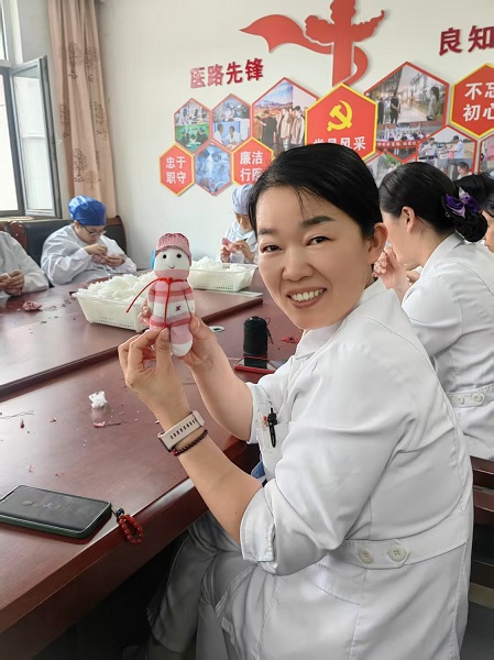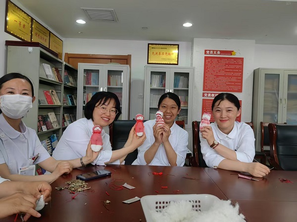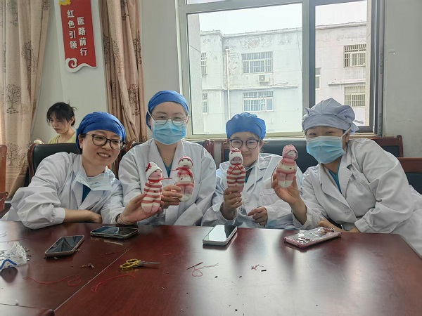 本草入玩偶,匠心驅(qū)夏暑;顒(dòng)現(xiàn)場,彩色棉襪、玲瓏針線與艾葉、薄荷、藿香等藥材整齊陳列,艾葉驅(qū)蚊安神,薄荷清涼解郁,藿香祛濕化濁,三者配伍可制成天然驅(qū)蚊“護(hù)身符”。護(hù)理人員化身“創(chuàng)意設(shè)計(jì)師”,有的將棉襪裁剪成憨態(tài)可掬的娃娃造型,還有的縫制出滑稽可愛的狗狗樣子,填充藥材時(shí)不忘細(xì)心調(diào)整比例。供應(yīng)室護(hù)士長王敏笑道:“把驅(qū)蚊藥材藏在玩偶肚子里,既實(shí)用又有童趣,我家倆娃肯定搶著要!” 重癥醫(yī)學(xué)科護(hù)士侯田田邊縫制娃娃玩偶邊分享:“縫合過程像給心靈放假,藥香隨著針腳流淌,緊繃的神經(jīng)不知不覺就放松了。”