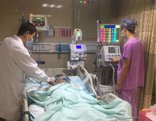 在重癥醫(yī)學(xué)科,我院醫(yī)護(hù)人員進(jìn)行著一場同死神較量的沒有硝煙的戰(zhàn)爭。“3床姚女士出現(xiàn)呼吸心跳驟停,需進(jìn)行緊急搶救!”護(hù)士緊急向值班醫(yī)師崔清濤主治醫(yī)師報(bào)告。在崔清濤主治醫(yī)師指揮下,重癥醫(yī)學(xué)團(tuán)隊(duì)開始對姚女士有條不紊地進(jìn)行緊急搶救,及時(shí)、有效的胸外心臟按壓,迅速的經(jīng)口氣管插管、有創(chuàng)機(jī)械通氣,精準(zhǔn)的靜脈有效用藥,患者很快恢復(fù)了自主心跳與呼吸,雙側(cè)瞳孔回縮,大動(dòng)脈波動(dòng)可被觸及,血壓92/65mmHg,心肺復(fù)蘇成功!姚女士再一次被重癥醫(yī)學(xué)團(tuán)隊(duì)從死亡線上搶救過來。