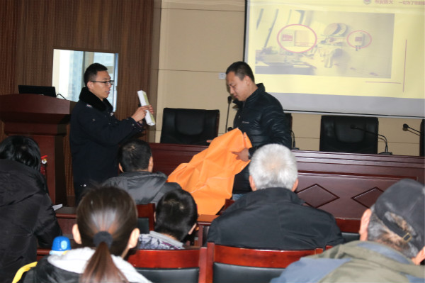 講座上,王衡教官以《珍愛(ài)生命 遠(yuǎn)離火災(zāi)》為主題,結(jié)合圖片和視頻,圖文并茂地為家長(zhǎng)們講解了火災(zāi)發(fā)生的原因、火災(zāi)種類及預(yù)防措施,并從火災(zāi)發(fā)生后,如何第一時(shí)間內(nèi)進(jìn)行自救。針對(duì)不同情況選擇不同滅火的方法,正確使用滅火器材及如何進(jìn)行緊急逃生等方面的知識(shí),向家長(zhǎng)進(jìn)行了全面詳細(xì)的分析和介紹。通過(guò)一個(gè)個(gè)真實(shí)的案例,告訴家長(zhǎng)火災(zāi)對(duì)人們生活的危害之大。為讓大家更好的了解安全的重要性,王教官邀請(qǐng)代表共同進(jìn)行演示,現(xiàn)場(chǎng)教學(xué),強(qiáng)調(diào)了家庭用火、用電安全。