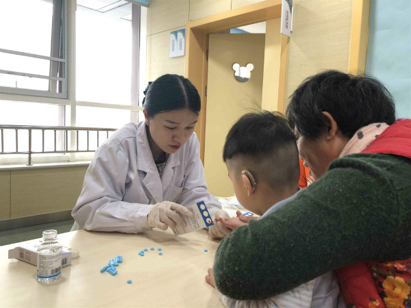 聊城市婦幼保健院康復(fù)院區(qū)工作人員對聽障兒童免費(fèi)進(jìn)行耳聾基因檢測血樣采集。