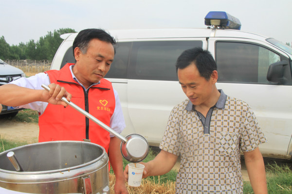 近日,驕陽似火,烈日炎炎,正值三夏麥?zhǔn)占竟?jié),6月12日,我院社會衛(wèi)生科聯(lián)合黨辦、綜合內(nèi)科、外科、放射科等一行10余人走進(jìn)于集鎮(zhèn)陳莊村、許營三亢村田間地頭,將兩大桶中藥代茶飲送給正在麥?zhǔn)盏娜罕姡瑸樗麄兯腿ヒ唤z清涼。