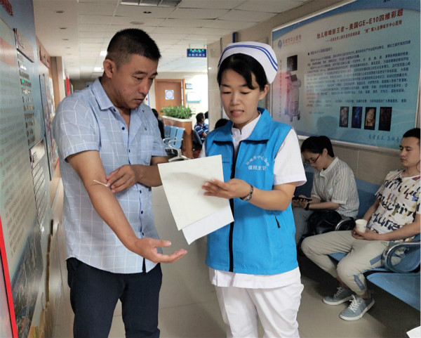 為踐行“不忘初心、牢記使命”主題教育要求,進(jìn)一步解放思想,暢通問(wèn)題反映渠道,更好地服務(wù)群眾,同時(shí)提高中層干部應(yīng)變及發(fā)現(xiàn)問(wèn)題的能力,我院出臺(tái)了《關(guān)于開(kāi)展走動(dòng)式服務(wù)的通知》,于7月份正式開(kāi)展走動(dòng)式服務(wù)。7月7日上午9點(diǎn),外科科護(hù)士長(zhǎng)李秋婷身穿“值班主管”藍(lán)色馬甲,開(kāi)啟第一次的走動(dòng)式值班。她嚴(yán)格按照走動(dòng)式服務(wù)記錄表要求,進(jìn)行全院巡視工作。“您好!請(qǐng)問(wèn)我能幫您什么嗎?”引導(dǎo)患者掛號(hào)、介紹醫(yī)生、指引科室,協(xié)助患者使用體檢機(jī)及微信繳費(fèi);巡視值勤責(zé)任區(qū)域環(huán)境清潔;維持門(mén)診排隊(duì)就診次序,她熱情地穿梭在人群之中,忙的不亦樂(lè)乎……“贈(zèng)人玫瑰,手有余香。通過(guò)走動(dòng)式服務(wù),不僅提高了自己發(fā)現(xiàn)問(wèn)題及解決問(wèn)題的隨機(jī)應(yīng)變能力,更感受到了服務(wù)群眾帶來(lái)的獲得感、快樂(lè)感。在今后的工作中,我要更加積極地參與到志愿服務(wù)中來(lái)。”經(jīng)過(guò)兩個(gè)多小時(shí)的服務(wù),李秋婷護(hù)士長(zhǎng)感受頗深。