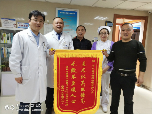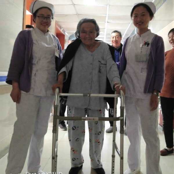 隨之而來的就是老奶奶下床練習活動,她又有了新的心理負擔。我握著老奶奶的手微笑著鼓勵她,老奶奶終于勇敢地邁出了第一步。老奶奶對我呵呵一笑,我的心里也笑開了花,第一步、第二步……我每天鼓勵著奶奶陪同奶奶進行訓練,從開始的床邊到病房門口,到病房走廊,再到護士站……老人家狀態(tài)良好,可以隨時出院了,老人和家屬握著我的手不住地感謝。老奶奶對她的家人說:“你們多像小杰閨女學學,不管我多著急、說話多難聽,人家一直笑著和我說話,和我解釋,也不嫌我煩,回家后你們也要像小杰一樣的對我,不然我就不出院了。”病房里充滿了笑聲,老人不舍得離開,她說她回家就見不到我們了,還說自己院里種著韭菜,要給我們送韭菜餡水餃,說自己包的水餃好吃。為了表示對骨科醫(yī)護人員的感謝,老人的家屬專門給我們送了錦旗和感謝信?吹嚼先思业臓顟B(tài)已經(jīng)完全恢復,聽著家屬的萬般感謝,我們的內(nèi)心是激動的,也是欣慰的。