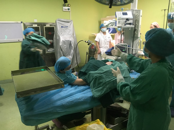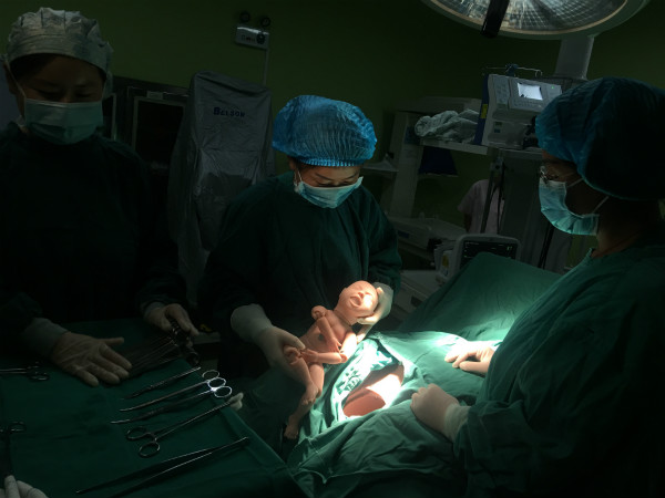 本次演練是一次“真槍實(shí)彈”的情景模擬演練。為保證演練效果,提前制定了嚴(yán)密的應(yīng)急方案、編寫了演練角本、布置了演練現(xiàn)場。下午4:30,演練開始。助產(chǎn)士在觀察孕婦時(shí),聽診胎心時(shí)發(fā)現(xiàn)胎心變慢,行陰道檢查,宮口開大3厘米,發(fā)現(xiàn)臍帶脫垂,她的手在陰道內(nèi)將胎兒先露部上推,并分開手指置于先露與盆壁之間,使臍帶由指縫通過而避免受壓,立即報(bào)告護(hù)士長。護(hù)士長立即組織人員參加急救,啟動(dòng)應(yīng)急預(yù)案。“立即停催產(chǎn)素靜滴!取頭低臀高位,吸氧!”“立即通知值班醫(yī)師,有一例臍帶脫垂!”一線值班醫(yī)師到:“患者臍帶脫垂診斷明確,現(xiàn)在計(jì)時(shí),持續(xù)胎心監(jiān)護(hù)、吸氧。患者宮口開大3cm,短期內(nèi)不能陰道分娩,立即通知二線醫(yī)師,通知手術(shù)室準(zhǔn)備手術(shù),我現(xiàn)在持續(xù)托舉胎先露,避免臍帶受壓。”二線、三線值班醫(yī)師陸續(xù)到位,立即投入搶救工作,其它醫(yī)護(hù)人員也有條不紊地做好各自工作。持續(xù)聽診胎心,報(bào)告胎心率100次/分,大家的心都提到了嗓子眼里!這時(shí)產(chǎn)科醫(yī)生、手術(shù)室醫(yī)護(hù)、新生兒科醫(yī)生已到位,最快到位的人員僅用了1分鐘,他們各司其職,緊密合作。于下午4點(diǎn)46分鐘剖出一個(gè)3000g的男嬰,立即置于復(fù)蘇臺(tái)上吸出羊水,擦干全身,給予刺激,評價(jià)心率122次/分,有自主呼吸,膚色紅潤,肌張力好,輕拍足底,“哇哇哇……”新生兒悅耳的哭聲響徹手術(shù)室,大家為母嬰平安又打了一場勝仗而興奮不已……