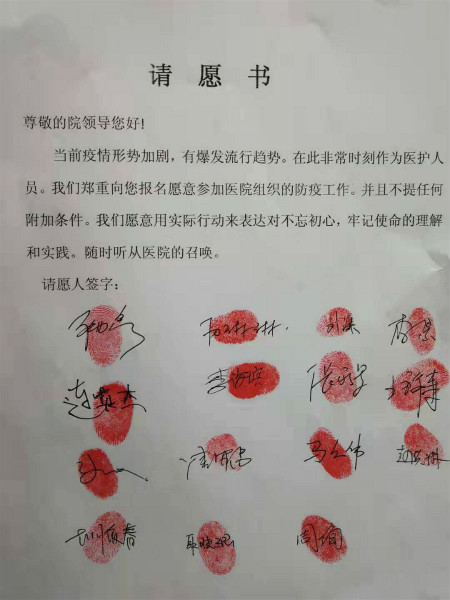 2020年的春節(jié)注定是一個(gè)不尋常的節(jié)日,新型冠狀病毒感染的肺炎疫情席卷全國(guó)多個(gè)城市。我院神經(jīng)內(nèi)科醫(yī)務(wù)人員紛紛行動(dòng)起來(lái),所有醫(yī)務(wù)人員都取消了自己的出行計(jì)劃,回崗位待命,積極投入到防控工作中,迅速成立應(yīng)急團(tuán)隊(duì),并簽署請(qǐng)?jiān)笗?shū)。