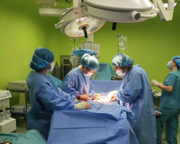 兒科值班醫(yī)生張彤和楊愛琳主任帶著清點(diǎn)完畢的搶救箱來到手術(shù)室,手術(shù)室里婦產(chǎn)科醫(yī)生林香蓮和張曉陽、助產(chǎn)士武靜靜、麻醉師、護(hù)士等都已經(jīng)在這個(gè)無聲的藍(lán)色戰(zhàn)場里忙碌著,因?yàn)楫a(chǎn)婦是乙型肝炎病毒攜帶者,大家按照要求做好消毒隔離措施,默契配合,動作嫻熟,準(zhǔn)備迎接這對新生命。隨著手術(shù)刀劃開隔離薄膜和一層層皮膚,一個(gè)女孩娩出了,給予常規(guī)斷臍、清理呼吸道后,患兒皮膚由青紫轉(zhuǎn)紅潤,哭聲由微弱轉(zhuǎn)洪亮,1分鐘后,男孩也順利娩出,皮膚紅潤,哭聲響亮,兩個(gè)早產(chǎn)兒體重在2.0kg左右。楊愛琳主任給新生兒們仔細(xì)查體,一般情況暫時(shí)穩(wěn)定,但患兒們系早產(chǎn)兒,并有胎膜早破潛在宮內(nèi)感染的可能,由張彤醫(yī)師帶著患兒們來到新生兒重癥監(jiān)護(hù)室,已經(jīng)預(yù)熱好輻射臺和暖箱的護(hù)士湯亞楠為他們擦拭身體、保暖,進(jìn)行住院觀察處置。