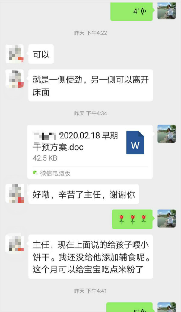 疫情期間,為避免感染的擴(kuò)散蔓延,我市各縣(市、區(qū))陸續(xù)實(shí)行交通管制,城鄉(xiāng)公共交通相繼限行或停運(yùn),孩子該正常查體了怎么辦?高危兒該復(fù)查了怎么辦?我院兒童保健科開起線上門診,咨詢范圍除了兒童心理衛(wèi)生、兒童喂養(yǎng)和營養(yǎng)、兒童生長發(fā)育、兒童家庭養(yǎng)育、兒童口腔保健外,兒?茝堁嘀魅螌Ω呶洪T診預(yù)約隨診寶寶實(shí)行線上一對一服務(wù),通過家長微信發(fā)過來寶寶不同體位視頻展現(xiàn)的能力,進(jìn)行個(gè)性化家庭訓(xùn)練指導(dǎo),并將文字版方案微信傳給家長。門診重要的咨詢內(nèi)容還包括新冠狀病毒的防護(hù)知識,如小兒出現(xiàn)體溫異常(37.3℃及以上),指導(dǎo)家長及小兒帶好口罩去就近醫(yī)院發(fā)熱門診做進(jìn)一步檢查,明確是不是新型冠狀病毒感染的肺炎病例。兒保科醫(yī)生積極關(guān)注疫情變化,利用微信公眾號、美篇積極宣傳科學(xué)防控知識,同步在多個(gè)家長微信群里授課并免費(fèi)答疑,做好家長的宣傳教育安撫及預(yù)防指導(dǎo)。