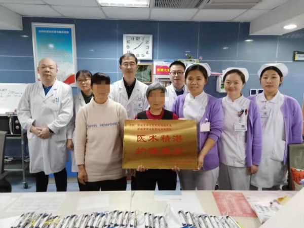 近日,東阿縣的宋大娘及她的家人,將一塊寫有“醫(yī)術(shù)精湛 護理周到”的牌匾送到我院心內(nèi)科趙燦燦醫(yī)師手中,以表達自己的謝意。