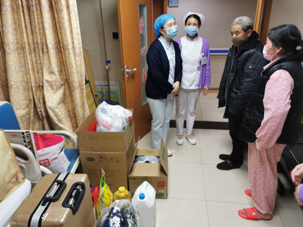 事情還要從幾天前說起。綜合內(nèi)科主管護師李艷風(fēng)上夜班的時候遇到一名特殊的住院患者許先生,他是高新區(qū)許營鎮(zhèn)的貧困戶,身患肺癌,在我院住院治療,妻子也因病在我院外科住院,家里還有三個孩子,因夫妻二人住院,三個孩子由家中老人照看。他家三年來靠種地生活,無其它經(jīng)濟來源,家庭非常困難。了解到這個情況后,李艷風(fēng)聯(lián)系了醫(yī)院護理人文關(guān)懷小組組長孟麗護士長,向她說明了許先生一家的具體情況。2月24日上午,在孟麗護士長帶領(lǐng)下,我院護理人文關(guān)懷小組成員帶著準備好的學(xué)習(xí)用品和牛奶等物品看望了許先生的妻子亢女士。