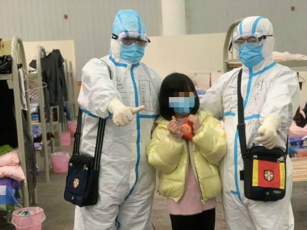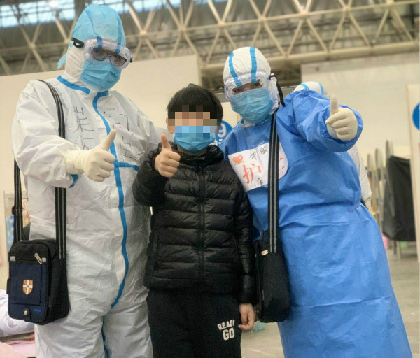 上個(gè)班我們小組轉(zhuǎn)入了兩位特殊的病人,就是照片上的兩個(gè)小朋友。小男孩7歲,非常聽(tīng)話,每天都認(rèn)真學(xué)習(xí)。小女孩9歲,非;顫,面對(duì)合影自己主動(dòng)擺POSE。她也很風(fēng)趣,我問(wèn)她學(xué)習(xí)怎么樣,她說(shuō):“還好,以前數(shù)學(xué)最好,結(jié)果到了四年級(jí)我的爸爸變成了我的數(shù)學(xué)老師,我的成績(jī)?cè)絹?lái)越差了。”惹得大家一陣歡笑。說(shuō)起她的父親,是個(gè)和藹的中年人,小學(xué)教師,本來(lái)他的核酸兩次檢測(cè)都是陰性,CT也沒(méi)什么問(wèn)題,已經(jīng)接到出院通知,可因?yàn)楹⒆雍怂釞z測(cè)陽(yáng)性,他毅然決定放棄出院,留下來(lái)與孩子共度難關(guān)。身為父親的我能深深地體會(huì)到這種心情,此刻他或許更希望患病的是自己,而孩子可以康復(fù)出院。樂(lè)觀的他們經(jīng)常互動(dòng),一起學(xué)習(xí)一起游戲,給方艙壓抑的環(huán)境帶來(lái)了一些活力,同時(shí)也鼓舞著我們繼續(xù)努力工作,好讓他們?cè)缛粘鲈号c家人團(tuán)聚。