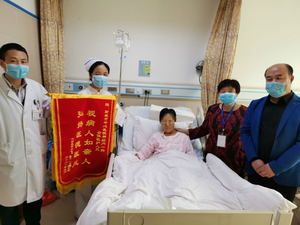 患者高齡,病情危重,且合并癥多而重。患者合并嚴(yán)重的冠心病,急性心肌梗死、心功能衰竭,因同時出現(xiàn)雙肺嚴(yán)重感染,反復(fù)發(fā)熱、喘憋、呼吸衰竭、痰栓窒息,多次在病房搶救并化險為夷;神經(jīng)內(nèi)科在多次院內(nèi)會診及病例討論后,及時根據(jù)患者病情變化調(diào)整治療方案。經(jīng)過神經(jīng)內(nèi)科、心血管內(nèi)科、呼吸內(nèi)科等多學(xué)科會診,通力協(xié)作,精心制定救治方案,在神經(jīng)內(nèi)科張西亭主任、司相山副主任醫(yī)師、胡愛春護(hù)士長和全體醫(yī)護(hù)人員的積極治療和精心護(hù)理下,患者的病情從病危轉(zhuǎn)向逐漸平穩(wěn),最終走向好轉(zhuǎn),在住院治療17天后康復(fù)出院。為表示感謝,這才有了患者出院前家屬送錦旗的一幕。