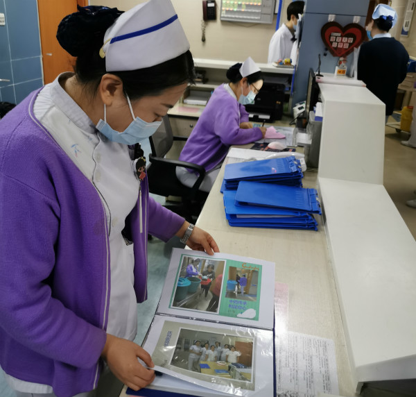 早晨7點45分,觀摩會開始。首先,責(zé)任護士從患者的基本信息、診斷、主要病情、治療情況及護理措施等方面對病歷進行匯報,病區(qū)護士長進行補充說明,并提出當(dāng)天重點問題。隨后,護士長們根據(jù)安排分成兩組對晨間大交班、床邊交班、患者安全、治療室管理、5S管理、優(yōu)質(zhì)護理服務(wù)六項內(nèi)容進行了觀摩、交流、學(xué)習(xí),其中心內(nèi)科病房的基數(shù)藥品管理、物品和藥品交接本標注檢查維護時間提示、優(yōu)質(zhì)護理服務(wù)項目記錄形式、倉庫內(nèi)物品管理等方面受到了一致好評。