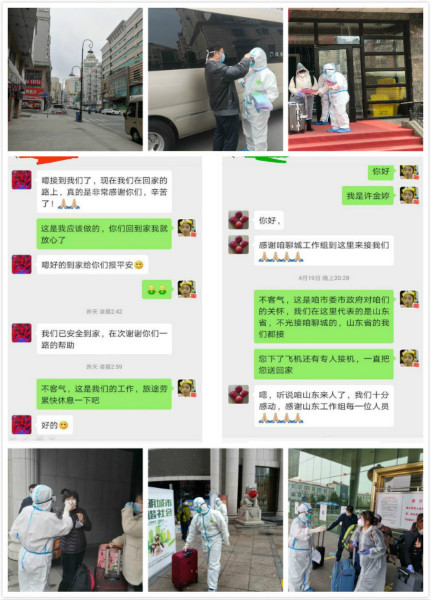張波主任跟綏芬河指揮部的姚科長(zhǎng)聯(lián)系好了之后,我開(kāi)始進(jìn)入隔離點(diǎn),與每一位解除隔離的山東籍人員核對(duì)身份。“您好,我是山東省政府派駐綏芬河工作專班的許金婷,請(qǐng)問(wèn)你是***嗎,您說(shuō)一下身份證后四位,您的健康碼和解除隔離證明出示給我看一下,好了。這是送給您的愛(ài)心包,里面有給山東老鄉(xiāng)的一封信,還有口罩和消毒濕巾等,現(xiàn)在請(qǐng)上車,我們送您回家”。