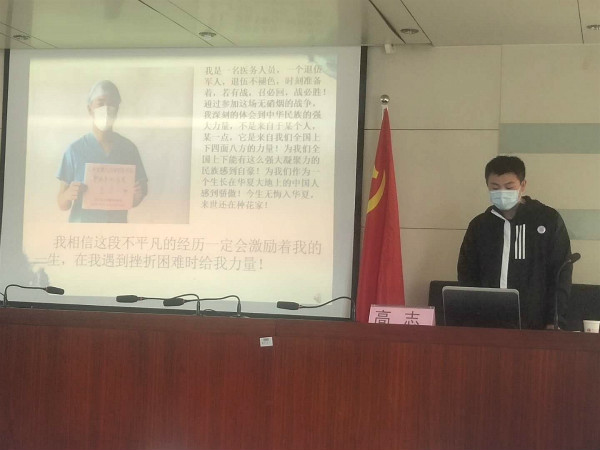 會上,第五黨支部書記任偉首先傳達了《醫(yī)院關于開展榜樣主題教育黨員學習活動的通知》。隨后,我院援鄂英雄高志、閆冉分別向同事們講述了自己在武漢抗疫一線的親身經(jīng)歷。2月9日我院高志、閆冉、張睦友三名同志隨山東省第八批援鄂醫(yī)療隊馳援武漢,4月1日平安凱旋,在武漢一線抗疫期間,服務于漢陽國博方艙醫(yī)院。宣講活動中,高志用照片抗疫日記的形式介紹了自己在抗“疫”一線的經(jīng)歷,在一線自己作為一名退役軍、一名護理人員,以堅強的意志和超強的體力,如何克服心理的恐懼、身體上的勞累和負傷,以及身處異鄉(xiāng)的各種生活上的困難做好防疫工作,保護好自己的同時也保護好戰(zhàn)友,打贏了這場沒有硝煙的戰(zhàn)斗。閆冉則是通過照片和視頻,聲情并茂地講述了方艙醫(yī)院中真心換真心的醫(yī)患關系,父親舍身保護孩子的全家抗疫的故事,黨員醫(yī)護人員時刻沖鋒在前,黨員志愿者把出艙機會讓給別人的感人故事。在這次不平凡的經(jīng)歷中,他們作為白衣戰(zhàn)士,切身感受到了黨性的偉大和光輝,只有中國共產(chǎn)黨才能帶領全國人民取得戰(zhàn)疫的勝利,感受到了祖國母親的溫暖,感受到了中華民族的強大力量,他們都在一線主動提交了入黨申請書,愿意在自己的崗位上為醫(yī)院、為國家繼續(xù)奉獻自己的青春和汗水。