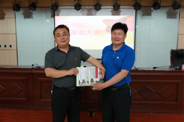 報(bào)告會后,進(jìn)行了贈書儀式。艾主任將自己匯同黨史辦編撰的《十二英烈傳》、《二十九英烈傳》系列叢書贈與醫(yī)院。2014年、2015年國家民政部分兩批公布了三百名、六百名著名烈士,其中,聊城籍及涉及聊城著名烈士分別有十二名、二十九名。為進(jìn)一步弘揚(yáng)烈士精神,講好烈士故事,艾主任廣泛收集相關(guān)資料、嚴(yán)謹(jǐn)考證,編撰了以上叢書。