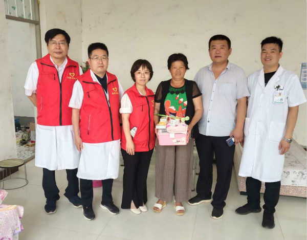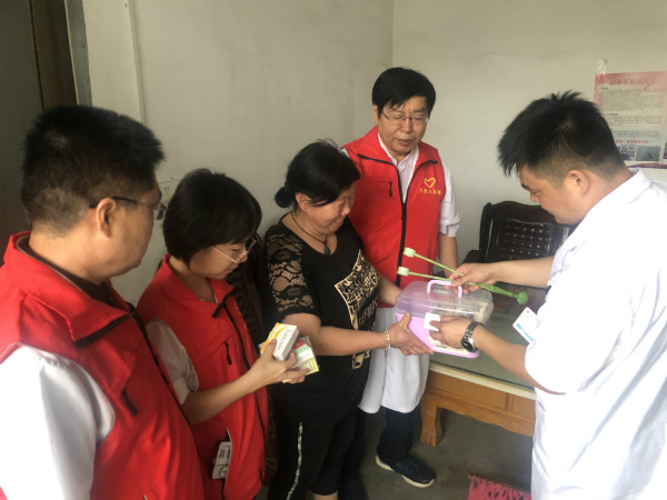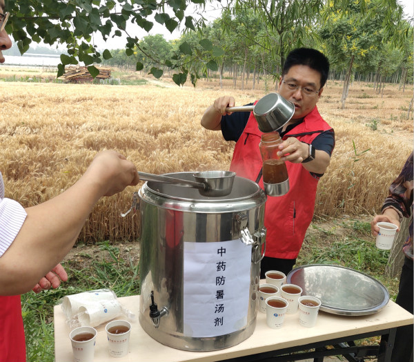 活動中,黨員志愿者帶著在醫(yī)院準備的防暑中藥湯劑來到田間地頭,為正在麥收的村民送上了一絲清涼。“大家辛苦了!這是我們中心醫(yī)院免費為大家準備的綠豆湯,里面還添加了白茅根、金銀花等中藥,主要功效是清熱、解暑,大家快來嘗嘗吧!”在給群眾送去清涼的同時,還向群眾講解夏季常見疾病的預(yù)防措施,并針對中暑的防治進行現(xiàn)場解說,為廣大村民送去貼心的服務(wù),受到了田間群眾的熱烈歡迎。隨后,在鄉(xiāng)村醫(yī)生的指引下,黨員志愿者先后到四戶貧困家庭家中送醫(yī)送藥,為貧困家庭配置了急救箱,里面配置了酒精、碘伏、棉球、棉棒、紗布等應(yīng)急用品,還針對夏季常見的腹瀉、蚊蟲叮咬等疾病發(fā)放了蒙脫石散、風油精等藥品。在王富貴大爺家,工作人員了解到他剛從我院神經(jīng)內(nèi)科出院,“醫(yī)生、護士照顧得很仔細,我恢復(fù)的很好,出院后我就把自己地里的麥子收回家了,今天你們又給送來了家里應(yīng)急用的急救箱和藥品,真實太感謝了。”王大爺說。