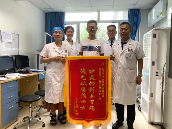 暢快呼吸是每個人的權利,但過敏性鼻炎、慢性鼻炎患者發(fā)作起來卻噴嚏連連、讓人心煩意亂;颊邉⑾壬褪且幻柺苓^敏性鼻炎之苦的患者,十余年間他備受折磨,最近他到市中心醫(yī)院就診后,醫(yī)院耳鼻喉科醫(yī)師利用針刺蝶腭神經(jīng)節(jié)療法,緩解了他的痛苦。開心的他送來了一面錦旗,上書“妙灸神針醫(yī)百病 德藝雙馨傳四方”。