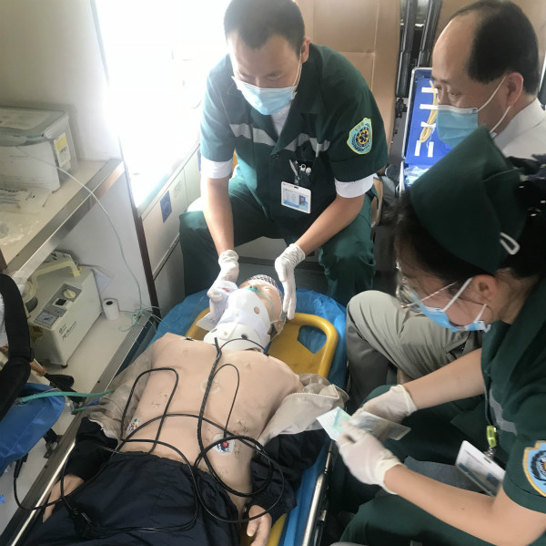 本次突發(fā)事件應(yīng)急演練由醫(yī)務(wù)科聯(lián)合護(hù)理部、醫(yī)療質(zhì)量督導(dǎo)小組成員、急診科、外科等多科室醫(yī)務(wù)人員共同組織。下午3時(shí),演練開始。“大夫你好,卓亞大廈路口往東發(fā)生車禍,患者急需救護(hù),請快點(diǎn)來!”我院急診科接到“路人”撥打的急救電話后,迅速組織救護(hù)車輛搭載醫(yī)護(hù)人員、急救用品前往事發(fā)地點(diǎn),僅用時(shí)6分鐘就到達(dá)了距離醫(yī)院3公里外的“事故現(xiàn)場”。到達(dá)現(xiàn)場后,醫(yī)務(wù)人員馬上跳下救護(hù)車,對患者的病情做出判斷;颊哳^部有傷口出血、小腿畸形,急診科大夫緊急對患者進(jìn)行頭部包扎、固定頸托、固定下肢、補(bǔ)液、心電監(jiān)護(hù)、吸氧……急救處理過程中,醫(yī)護(hù)人員有條不紊、忙而不亂,及時(shí)將傷員轉(zhuǎn)運(yùn)至醫(yī)院救治;卦和局,出診醫(yī)護(hù)人員通過電話報(bào)告患者情況,聯(lián)系院內(nèi)做好相關(guān)科室會診準(zhǔn)備。3點(diǎn)12分患者到達(dá)醫(yī)院后,急診科護(hù)士協(xié)助醫(yī)師對患者進(jìn)行處置。經(jīng)過我院醫(yī)護(hù)人員的一系列的救治,該“患者”轉(zhuǎn)危為安,病情穩(wěn)定。