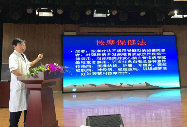 在健康講座上,我院第三黨支部書記、骨科主任醫(yī)師侯正軒為全體教師講解《頸椎病的診治》,他圍繞頸椎病的發(fā)病原因、治療方法和日常注意事項(xiàng)進(jìn)行了詳細(xì)介紹,同時(shí)對頸椎保健操的做法進(jìn)行了教授;隨后,乳腺科蔡華醫(yī)師為全體女教師進(jìn)行了《關(guān)愛乳房 呵護(hù)女性健康》的講座,就乳腺自我檢查的步驟進(jìn)行了詳細(xì)講解。講課結(jié)束后,我院外科、內(nèi)科、皮膚科等臨床專家為各位老師進(jìn)行了義診活動(dòng),為教師們測量血壓,講解體檢報(bào)告,針對個(gè)人的不同情況,耐心地叮囑他們各種日常注意事項(xiàng),詳細(xì)介紹防病和養(yǎng)生知識(shí),提出合理的膳食、運(yùn)動(dòng)等生活指導(dǎo)。在現(xiàn)場參與活動(dòng)的張老師說:“這樣的活動(dòng)對老師們真的非常實(shí)用,讓大家不出學(xué)校就可以享受到免費(fèi)醫(yī)療服務(wù),提高了健康知識(shí)水平,增強(qiáng)了健康保護(hù)意識(shí)。”