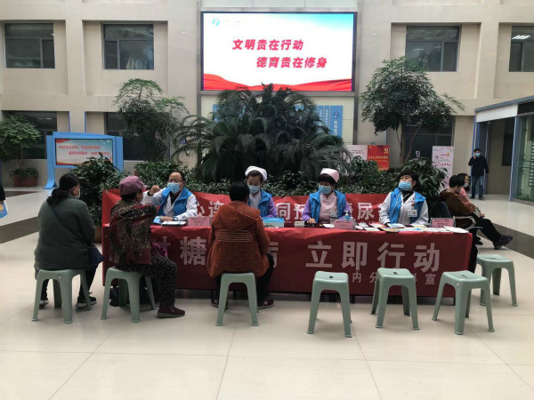 每年的11月14日是世界糖尿病日。為進一步提高廣大群眾主動防控糖尿病意識,提高糖尿病患者的自我管理能力,切實降低糖尿病危害,普及健康生活方式,在世界糖尿病日來臨之際,我院綜合內(nèi)科在醫(yī)院大廳舉辦世界糖尿病日義診活動。