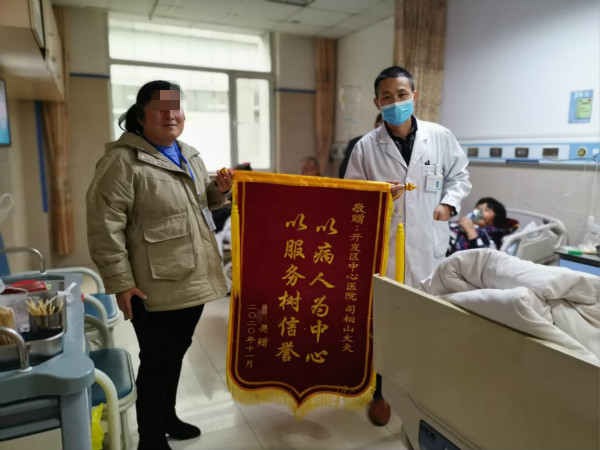 患者王先生患腦血管病、高血壓、糖尿病近10年,因頭暈、雙下肢乏力在我院神經(jīng)內(nèi)科住院治療。司相山副主任醫(yī)師通過10多天一對一式的跟蹤陪伴服務(wù)來管理患者的飲食、運動、行為、心理狀況,患者病情得到有效控制,血壓、血糖逐漸平穩(wěn),現(xiàn)在基本恢復(fù)正常。出院之前,他特地吩咐孩子定制感謝錦旗,以感謝醫(yī)護人員的精心治療、細(xì)心護理和熱情、周到的服務(wù)。