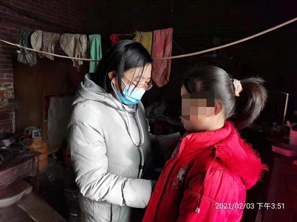 經(jīng)過兩個(gè)小時(shí)的車程,大家來到陽谷縣李臺鎮(zhèn),實(shí)地走訪了2名孤兒家庭,為他們帶去了羽絨服等衣物以及糧油、水果等春節(jié)慰問品。兒科主任韓永才主任醫(yī)師和兒?浦魅螐堁喔敝魅吾t(yī)師分別與孤兒建立結(jié)對幫扶聯(lián)系,康復(fù)院區(qū)醫(yī)療組張彤和徐艷艷主治醫(yī)師當(dāng)場對孩子們進(jìn)行了健康體檢,了解了他們的生理和心理健康狀況,建立了健康檔案,方便以后有針對性地為他們提供健康咨詢、心理輔導(dǎo)、慢性病管理等關(guān)愛服務(wù)。孤兒家庭十分感動,表示雖然孩子是不幸的,家庭中也有很多困難,但是萬幸的是有黨和政府的關(guān)愛。孩子們也表示,要奮發(fā)圖強(qiáng),好好學(xué)習(xí)以報(bào)效國家和社會。