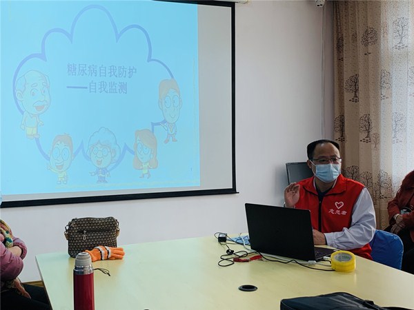 本次講座由綜合內(nèi)科王立強(qiáng)主治醫(yī)師進(jìn)行授課。王立強(qiáng)主治醫(yī)師通過PPT形式,圖文并茂地向大家介紹了糖尿病、高血脂等老年常見病的飲食指導(dǎo)、防治知識(shí)及患者用藥中的常見誤區(qū),通過深入淺出、通俗易懂的講解,為廣大居民送上慢性疾病防治的“醫(yī)學(xué)快餐”。活動(dòng)現(xiàn)場(chǎng),王立強(qiáng)耐心聽取群眾咨詢的問題,悉心為群眾診查病情,詳細(xì)講解致病因素,并告知相關(guān)注意事項(xiàng),做好下一步的身體檢查。60多歲的糖尿病患者王大爺深有感觸地說:“這次講座沒有白來,通過與專家面對(duì)面交流,學(xué)習(xí)了很多糖尿病的相關(guān)知識(shí),我都記到本子上了,對(duì)我以后控制病情幫助很大。”
