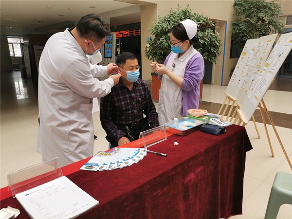 我院肛腸科在一樓大廳設立咨詢臺,擺放防治便秘健康知識展板,吸引了來院就診患者駐足觀看。義診現(xiàn)場,肛腸科醫(yī)護人員耐心地接待每一位患者,認真傾聽患者的病情描述,并針對病情給予詳細的解答和診治安排,向咨詢者講解便秘的發(fā)生原因、危害及預防保健知識,發(fā)放肛腸疾病、便秘防治宣傳材料,并免費為便秘患者進行耳穴壓豆,對長期便秘患者進行肛門鏡檢查。同時,肛腸科護理人員走進門診向患者宣傳便秘防治知識,受到了患者的一致好評。