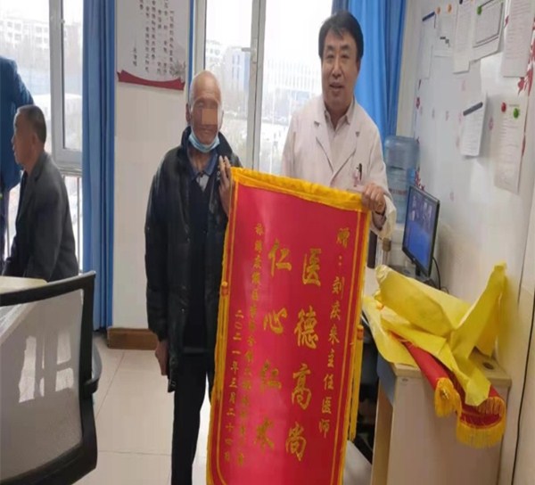“我去年在咱們醫(yī)院住了兩次院,多虧劉主任和劉程醫(yī)生的精心治療,才使我恢復(fù)健康。”近日,患者李大爺將寫有“醫(yī)德高尚 仁心仁術(shù)”“醫(yī)者父母視病人如親人 弘揚(yáng)醫(yī)德醫(yī)風(fēng)”的兩面錦旗送到我院外科主任劉慶來及主治醫(yī)師劉程手中,對(duì)其住院期間受到的精心治療和優(yōu)質(zhì)服務(wù),再三表示感謝。