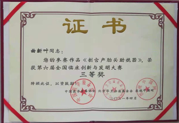 曲新葉,我院孕產(chǎn)保健部部長、產(chǎn)科主任、主任醫(yī)師,從事產(chǎn)科工作30余年,有著豐富的臨床經(jīng)驗。我院產(chǎn)科作為市級重點學科,堅持把科研發(fā)展工作放在重中之重的位置,加大科研創(chuàng)新力度,大力開展新技術(shù)、新療法。作為產(chǎn)科主任,曲新葉一直努力在臨床工作中總結(jié)經(jīng)驗,他發(fā)現(xiàn),在剖宮產(chǎn)中,有些抬頭娩出困難的病例,于是結(jié)合自身工作經(jīng)驗,發(fā)明了剖宮產(chǎn)胎頭助娩器。