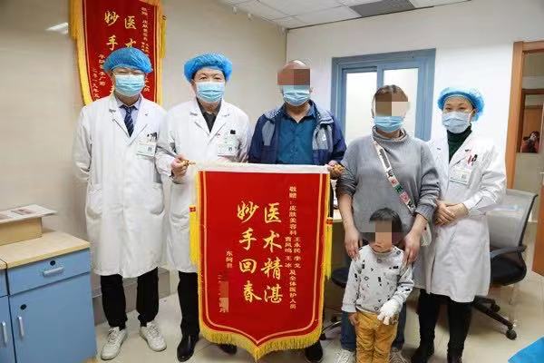 “通過手術(shù)孩子的手終于可以伸直了,太感謝曹主任和科室的醫(yī)護(hù)人員了。”近日,東阿縣的于女士將一面寫有“醫(yī)術(shù)精湛 妙手回春”的錦旗送到我院皮膚整形科主任曹鳳鳴手中。
