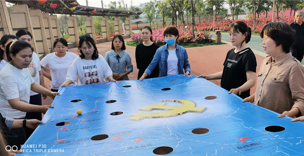 為充分展現(xiàn)護理團隊的精神風貌,進一步凝聚團結、向上、積極、拼搏的團隊精神,幫助護理工作者舒緩緊張的工作壓力,本次團建活動精心組織,設置了齊眉桿、一圈到底、重走長征路、筷子夾球、你來比劃我來猜等多種游戲。護理姐妹們暫時放下繁忙的工作,全身心地投入到游戲之中。在緊張激烈、有趣活躍的比賽氛圍中,每個隊員膽大心細,互相鼓勵,隊員們不斷總結經驗、吸取教訓,克服重重困難,經過近4個小時的共同努力,完成了各種項目的考驗,打破了一次又一次的不可能。歡聲笑語在活動現(xiàn)場飄蕩,輕松快樂的笑容洋溢在每個人的臉上;顒幼詈,大家以紅色小故事講解的形式分享了自己的感悟。