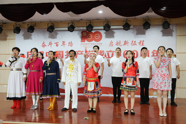 本次紅歌匯演共有來自黨委辦公室及各黨支部的10支隊(duì)伍參加。紅歌演唱《不忘初心》、《中國中國鮮紅的太陽永不落》、《我和我的祖國》,嘹亮高昂的歌聲傳達(dá)出我院職工對(duì)偉大祖國深沉的愛和深情祝福。第三黨支部將朗誦融入到合唱中,帶來了慷慨激昂的《國家》!洞虬袣w來》、《各族人民心向黨》、《我的中國心》旋律優(yōu)美,節(jié)奏明快,歌聲悠揚(yáng)婉轉(zhuǎn)。音樂說唱《黨旗飄飄紅艷艷》曲調(diào)歡快,生動(dòng)講述了在院黨委的正確領(lǐng)導(dǎo)下,我院職工踐行“厚德敬業(yè) 良知敏行”的院訓(xùn)精神,愛崗敬業(yè)、積極奉獻(xiàn),在醫(yī)療服務(wù)、疫情防控中涌現(xiàn)出來的一批批榜樣人物事跡。“滿懷豪情領(lǐng)略浩蕩的風(fēng),踏平坎坷我們榮辱與共,實(shí)現(xiàn)夢(mèng)想擁抱天邊彩虹,我們昂首再啟程,共筑中國夢(mèng)……”最后,歌曲《共筑中國夢(mèng)》將匯演活動(dòng)推向高潮。全體觀眾手拿小黨旗,共同揮舞,共同歌唱。