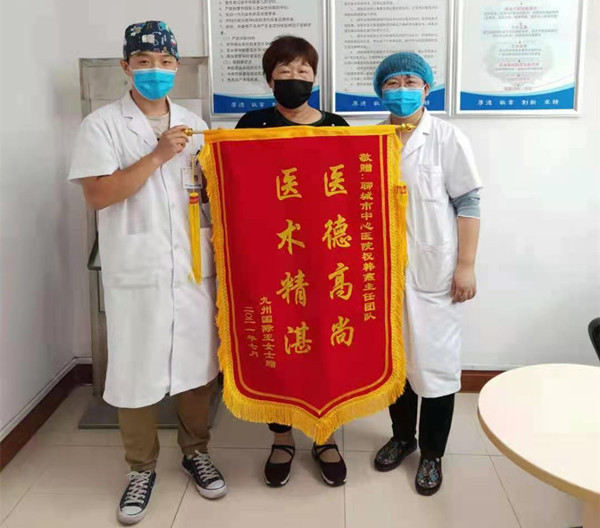 57歲的王阿姨月經(jīng)改變3年多,一直未引起重視,直到今年1月份陰道流血量明顯增多,且時(shí)間長達(dá)20多天,才慕名來我院婦科門診檢查。入院后第2天,婦科主任韓燕便為王阿姨實(shí)施了宮腔鏡檢查+診刮術(shù),術(shù)后病理提示:子宮內(nèi)膜樣腺癌(IA)期。經(jīng)過充分的術(shù)前討論及術(shù)前準(zhǔn)備,患者于宮腔鏡術(shù)后第3天實(shí)施了經(jīng)腹筋膜外全子宮+雙附件切除+盆腔淋巴結(jié)清掃術(shù),術(shù)中出血少,術(shù)后第2天患者就能下床活動,不到一周康復(fù)出院。術(shù)后,王阿姨規(guī)律來我院化療,且無任何不適。為表達(dá)自己的感激之情,她特意制作一面錦旗送到婦科門診。