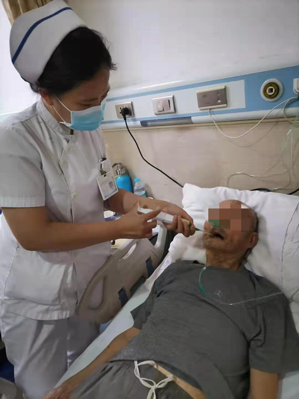 神經(jīng)內(nèi)科護士長張夏了解到這一情況后,立即想起了之前學(xué)習(xí)的間歇性經(jīng)口食管插管技術(shù)(IOE),于是立即給患者進行置管、檢查在胃內(nèi)情況、注食,并且?guī)ьI(lǐng)科室護士學(xué)習(xí)該技術(shù)的相關(guān)注意事項,指導(dǎo)患者家屬自行插管喂飯等,經(jīng)過幾天的營養(yǎng)指導(dǎo),老人的精神狀態(tài)明顯好轉(zhuǎn),營養(yǎng)指標也逐漸恢復(fù)了正常,每次詢問老人情況時家屬總會表達內(nèi)心的感激。