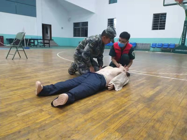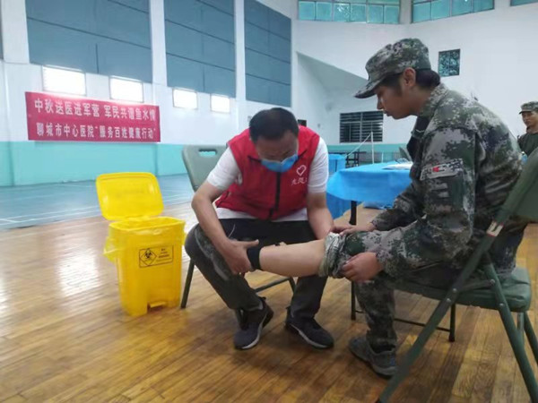 我院黨委委員費林晶帶領(lǐng)內(nèi)科、外科、骨科、急診科等專業(yè)的醫(yī)務(wù)人員開展此次義診活動。醫(yī)務(wù)人員認(rèn)真與每一位官兵交談,詳細(xì)了解他們的身體健康狀況、飲食及生活習(xí)慣,對問詢過程中發(fā)現(xiàn)的病情,根據(jù)實際情況提供個性化的治療建議,并仔細(xì)解答官兵咨詢的醫(yī)療問題。針對官兵們平日訓(xùn)練任務(wù)多,普遍存在肌肉拉傷、關(guān)節(jié)損傷等情況,骨科醫(yī)師給予了詳細(xì)指導(dǎo)。同時,急診科開展了現(xiàn)場急救培訓(xùn),為官兵們演示了心肺復(fù)蘇、外傷止血、包扎、固定和正確搬運等急救手法,講解了常見意外傷害的現(xiàn)場處理、日常訓(xùn)練防護等知識。