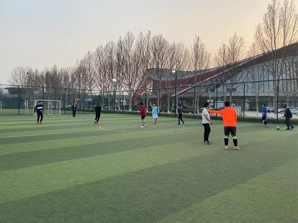 文體社團中的足球小組是由熱愛足球運動的職工組成,是醫(yī)院足球愛好者的交流平臺。此次足球訓練由熱身、傳接球訓練和分組對抗訓練三個部分組成。其中最為精彩的為分組對抗,足球小組分成紅黃兩隊開展對抗賽。雙方你來我往,互有攻防,隊員分工明確、配合默契,在球場上不斷奔跑、進攻、帶球過人,拼搶激烈,隊員們在場上所體現(xiàn)出來的拼搏精神和對比賽的認真態(tài)度并不亞于專業(yè)球員。雖然初春的傍晚溫度較低,但絲毫影響不了同事們的踢球熱情,在這里,大家一起享受足球,增進友誼,足球小組第一次團練圓滿成功。