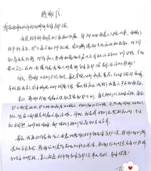 信紙雖輕薄,份量卻厚重,它承載著患者滿(mǎn)滿(mǎn)的感激之情,是對(duì)醫(yī)護(hù)人員的信任和鼓勵(lì),也是鞭策醫(yī)護(hù)人員不斷向前的動(dòng)力。我院將以更加優(yōu)質(zhì)的服務(wù)和精湛的技術(shù)為廣大孕產(chǎn)婦的母嬰健康保駕護(hù)航。