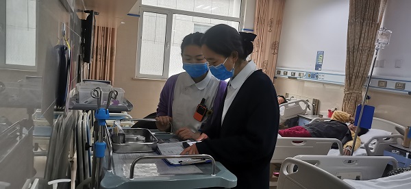 為盡快掌握每個科室的護理工作情況,我院護理部主任邢建敏、質(zhì)控專員杜春萍、科護士長李秋婷、趙詠軍、譚藝每周到臨床科室,跟隨各班次護士下沉到病房,了解各項護理措施的落實情況,健康宣教內(nèi)容及護患間日常的溝通能力等,并指導(dǎo)護士學(xué)習(xí)特殊患者的日常護理、風險評估等內(nèi)容。同時考察了護士長護理管理重點的掌握、病區(qū)重點患者的了解情況、急危重癥患者護理計劃的調(diào)整等方面內(nèi)容。