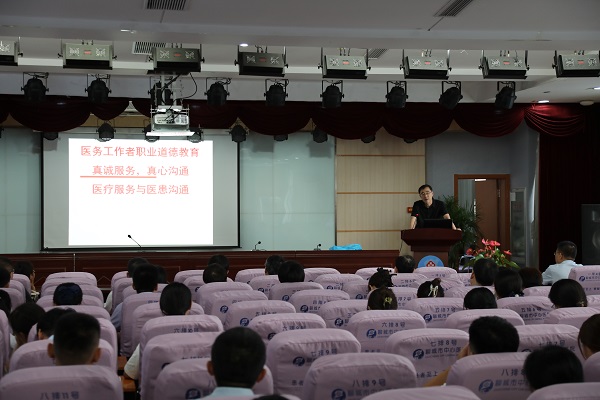 為進一步豐富職業(yè)道德教育形式,提高職業(yè)道德教育的效果,根據(jù)醫(yī)院職業(yè)道德教育工作部署,8月21日下午,我院在六樓學術(shù)報告廳舉辦“醫(yī)德標兵上講臺”職業(yè)道德教育活動,醫(yī)院班子成員,全體中層干部、黨員、中青年骨干、臨床醫(yī)師共150余人參加了活動。醫(yī)院黨委副書記楊志峰主持活動。
