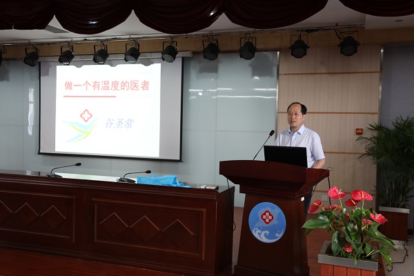 活動中,心內(nèi)科主任潘棟、綜合內(nèi)科副主任醫(yī)師谷圣常、康復中心醫(yī)療部主任張彤分別從自身經(jīng)歷,親身感觸進行了生動感人的講解。潘棟從真誠服務(wù)、用心溝通兩個方面分享了一個醫(yī)生如何修煉職業(yè)修養(yǎng)、提升思想境界;谷圣常從關(guān)心患者所需所盼,將心比心、互換立場的角度分享了做一個有溫度的醫(yī)生的切身感悟;張彤從永葆醫(yī)者初心角度分享了作為一個醫(yī)生精益求精、追求進步的從醫(yī)之路。聽完之后,在場職工感同身受、深有感悟,紛紛表示:他們是我們身邊的典型榜樣,他們的先進事跡和精神可信、可敬、可學、可做!今后要以榜樣的力量激勵自己奮勇前行。