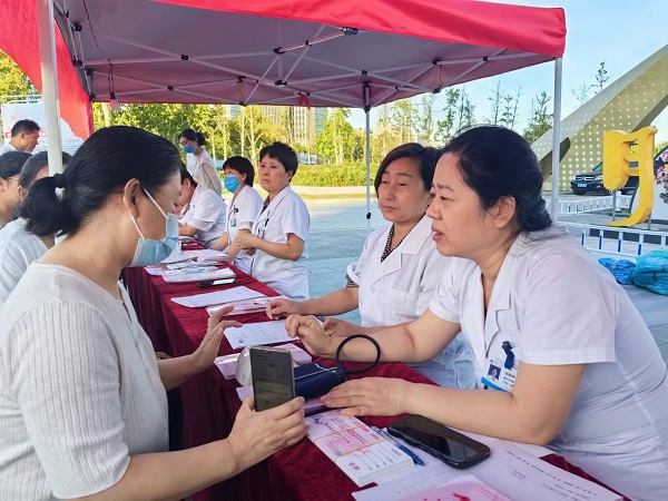9月13日下午,我院在月季里廣場開展預(yù)防出生缺陷日主題大型義診活動,集中優(yōu)勢資源,派駐了來自生殖中心、產(chǎn)篩中心、聽力篩查中心、兒科等多學(xué)科的資深專家來到義診現(xiàn)場。從懷孕前、懷孕中、分娩后等三個關(guān)鍵的生育環(huán)節(jié),向前來的備孕及孕期婦女耐心地宣講婚檢、孕檢、補服葉酸、合理膳食、產(chǎn)前篩查、超聲檢查、新生兒疾病篩查等對預(yù)防出生缺陷的重要意義;義診現(xiàn)場擺放出生缺陷預(yù)防展板,工作人員發(fā)放內(nèi)容豐富的健康教育折頁,讓群眾隨取隨看,幫助大家在學(xué)知識的同時提升自我保健意識和健康素養(yǎng)。