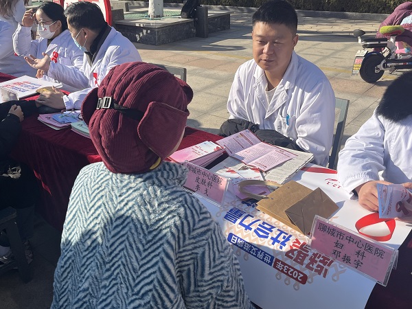 “日常生活和學(xué)習(xí)接觸會不會感染艾滋病?”“艾滋病傳播途徑有哪些?”12月1日上午,我院的專家、醫(yī)務(wù)人員在市民文化廣場不顧嚴(yán)寒,積極投身防艾宣傳工作,通過設(shè)立咨詢臺、懸掛橫幅、發(fā)放宣傳手冊等方式,向居民宣傳艾滋病防治知識,詳細(xì)講解艾滋病的癥狀、傳播途徑、檢測方法、預(yù)防方法和治療方法。在現(xiàn)場,我院專家還免費為群眾測量血糖、血壓,提供健康咨詢和指導(dǎo)等服務(wù),引導(dǎo)居民正確認(rèn)識和看待艾滋病,掌握科學(xué)的“防艾”知識,F(xiàn)場共發(fā)放宣傳資料300余份,提供問詢服務(wù)100余人次等。