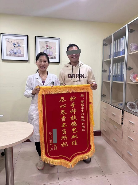 “我們真的很感謝肖主任,從待產(chǎn)、分娩和產(chǎn)后康復(fù)的這段時間里,肖主任醫(yī)師和科室醫(yī)護人員貼心的陪伴照顧,給予我克服孕期困難的勇氣和信心,成就了一位20多歲幸福的新手媽媽。”出院時,夫妻二人將一面繡著“妙手神技德藝雙全,盡心盡責(zé)不負所托”的錦旗送給肖明翠及科室人員,對其高尚的醫(yī)德和精湛的醫(yī)術(shù)表示敬佩與深深的感謝。