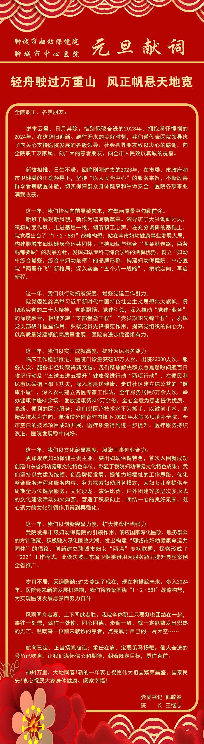 聊城市婦幼保健院2024年元旦獻(xiàn)詞