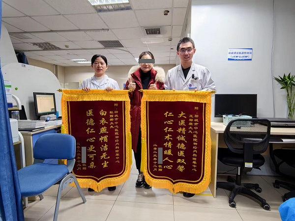 近日,我院神經(jīng)內(nèi)科眩暈中心收到了印有“大醫(yī)精誠(chéng)、德醫(yī)雙馨,仁心仁術(shù)、情暖人心”“白衣燕帽潔無(wú)塵、醫(yī)德人心更可親”的兩面錦旗。這兩面錦旗不僅是對(duì)醫(yī)護(hù)人員的高度贊揚(yáng)和感激,更是對(duì)他們的專業(yè)技術(shù)和真誠(chéng)服務(wù)的認(rèn)可。