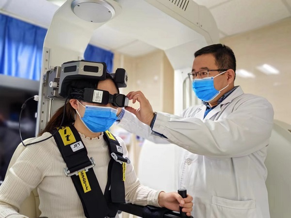 有人說,醫(yī)生只要運用手法復(fù)位耳石即可治療耳石癥。但是,手法復(fù)位存在定位不準(zhǔn)、復(fù)發(fā)率較高等問題,眩暈治療儀可幫助患者明確耳石癥原因,進(jìn)行復(fù)位后訓(xùn)練。眩暈治療儀就像是VR體驗設(shè)備,患者坐到眩暈治療儀上,佩戴好安全帶后,該儀器通過模擬患者體位的變化,如躺下、坐起、左右翻身等姿勢,利用高清視頻眼罩采集患者的眼震情況,并對這些數(shù)據(jù)進(jìn)行加工處理,為醫(yī)生診斷提供參考。